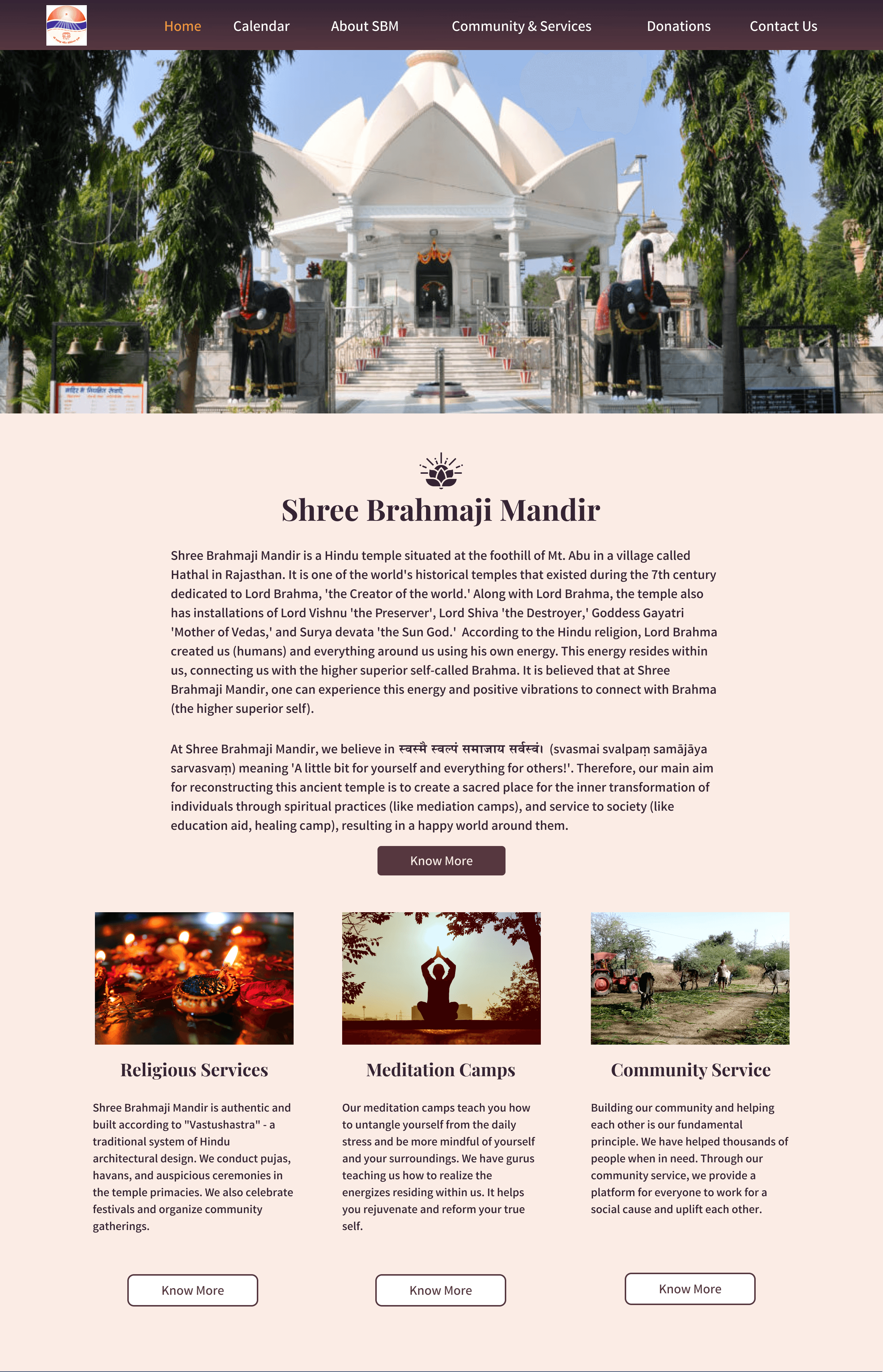 The Problem A Brahma temple serving a diverse community had virtually no online presence. Their single-page 1990s-style website was undiscoverable, unprofessional, and creating real barriers: