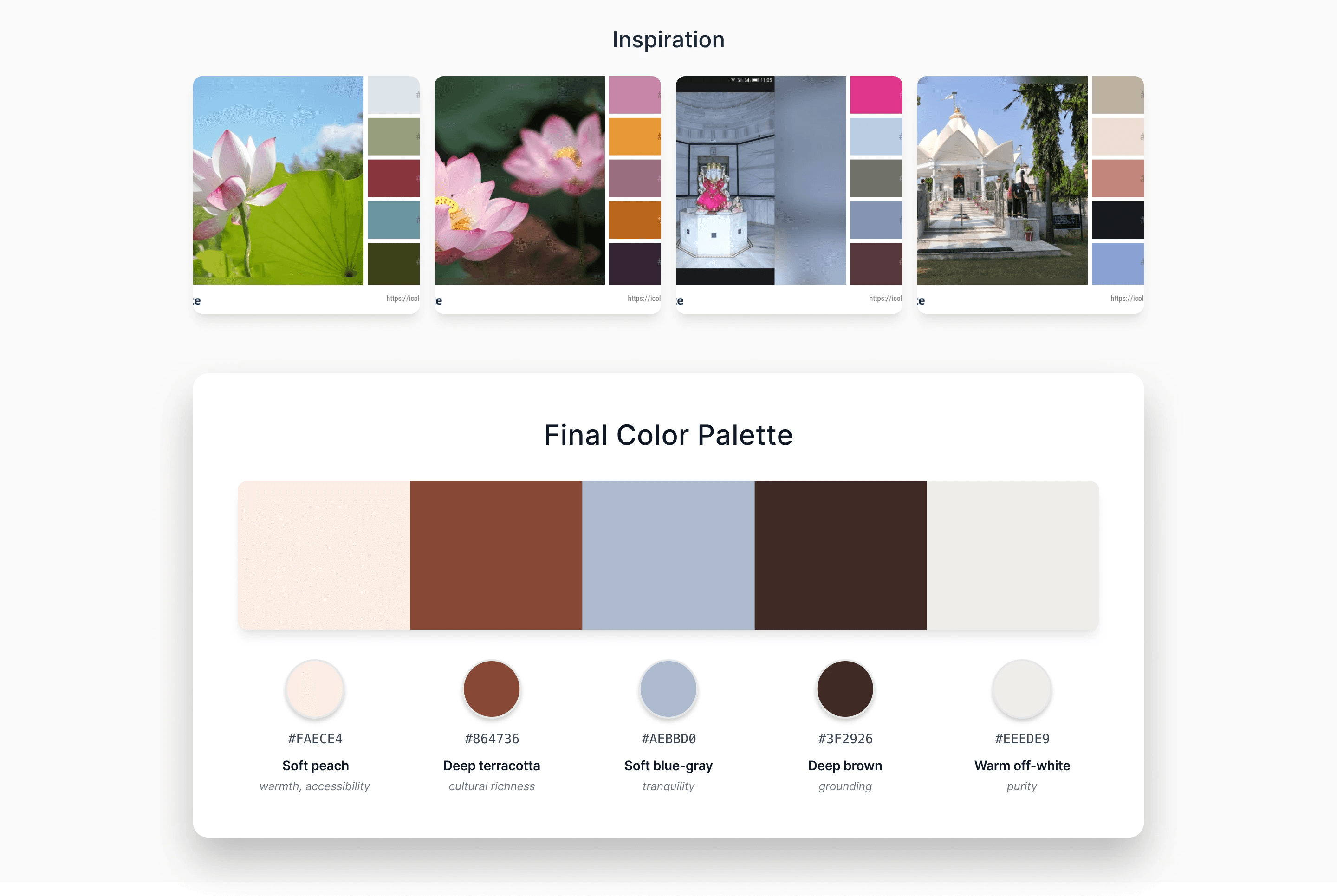 Competitive Analysis Analyzed temple website structures to understand common information architecture patterns and layout conventions, identifying best practices for spiritual community platforms.